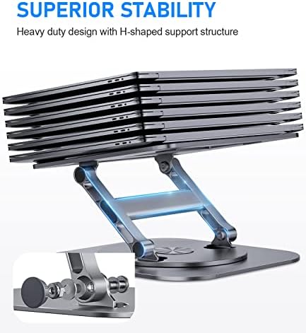 【360 Degree Rotation with Sturdy Support】This laptop desk stand can rotates on its centered round base, allowing the top half of the stand to rotate infinitely in either direction. This give you plenty of flexibility in terms of working position. It will be especially useful for group projects or meetings. What’s more, featured with sturdy H-shaped support structure which make it more stable than normal laptop stands.