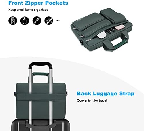 The main inner compartment holds your laptop and other important things. 2 raised & 1 flapover & 1 horizontal pockets are convenient for quick-access and store cell phone, pen slots, wallet, keys and other small items. Multifuncional 4 front pockets design laptop shoulder bag enables you to carry your laptop/notebook/ultrabook computer in a uniquely sleek style.