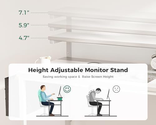 【Adjustable Monitor Stand】The monitor stand shelf can be adjusted to 3 height positions (4.7”/5.9”/7.1”) to meet your needs. It keeps screens at an optimal height for working and promotes a healthy neck and sitting posture. The monitor shelf also provides additional surface storage area.