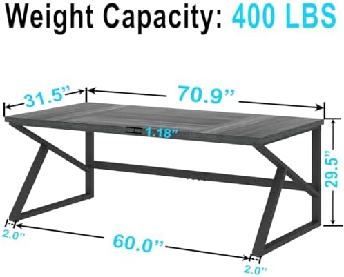 【Spacious Work Space & Leg Room】: Measuring 31.5″D x 70.8″W x 29.5″H overall, this extra long computer desk offers ample space to accommodate multiple monitors, pc, laptop, printers, files, books, lamps and any other office essentials, ensuring you have everything you need within arm’s reach for enhanced productivity. Featuring two K-shaped metal legs with an open structure, this large home office desk provides ample leg room, promoting comfort during extended periods of use.
