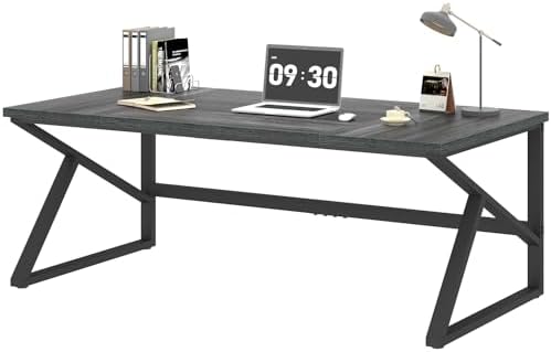 【Spacious Work Space & Leg Room】: Measuring 31.5″D x 70.8″W x 29.5″H overall, this extra long computer desk offers ample space to accommodate multiple monitors, pc, laptop, printers, files, books, lamps and any other office essentials, ensuring you have everything you need within arm’s reach for enhanced productivity. Featuring two K-shaped metal legs with an open structure, this large home office desk provides ample leg room, promoting comfort during extended periods of use.