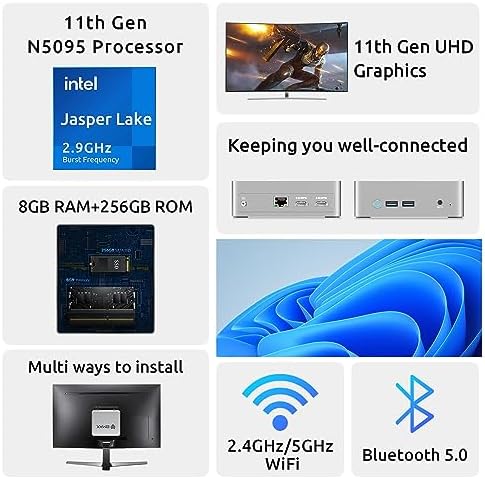 This mini desktop computer comes with 11th Gen Jasper Lake N5095 processor(4Core/4Threads,up to 2.9GHz,4MB L3 Cache)that based on the new Tremont architecture.It is manufactured by 10nm advanced technology and 35% higher than the previous generation processor performance. The maximum memory speed and capacity are 2933MHz and 16GB,and it can easily handle multiple tasks.