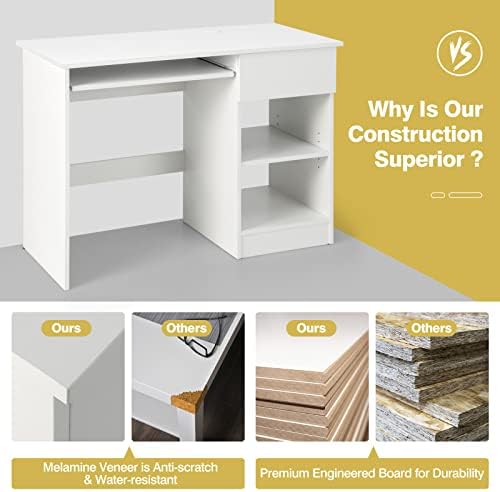 【Spacious Storage Drawer】This computer desk has a compact design with a large capacity drawer on the right side to store some personal items. And the smooth metal slides are easy to push and pull.