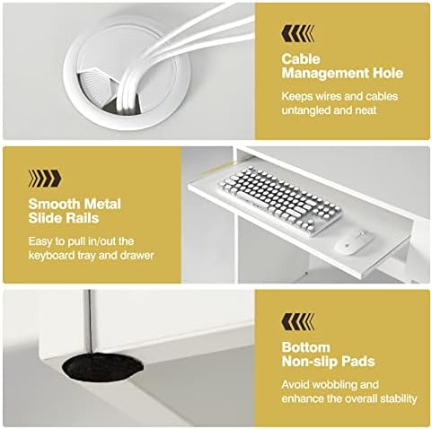 【Workstation with Keyboard Tray】Featuring a separate pull-out keyboard tray, this computer desk provides an ample and spacious working space for organizing and storage. What’s more, the tabel comes with a cable management hole to avoid the wires from tangling.