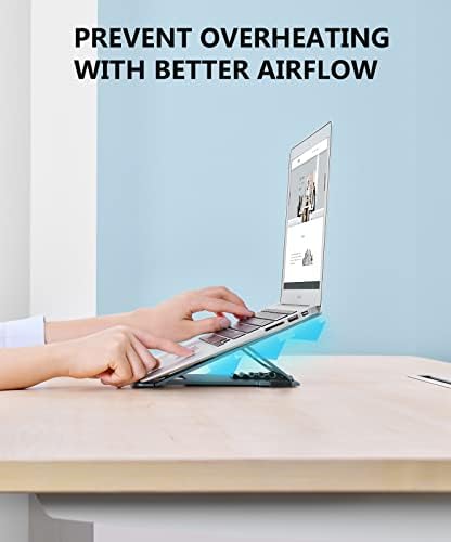 Adjustable and Ergonomic: The laptop stand has 5 adjustable heights that can adjust to a comfortable operating angle and height based on your actual need, lets you fix posture and easy typing.