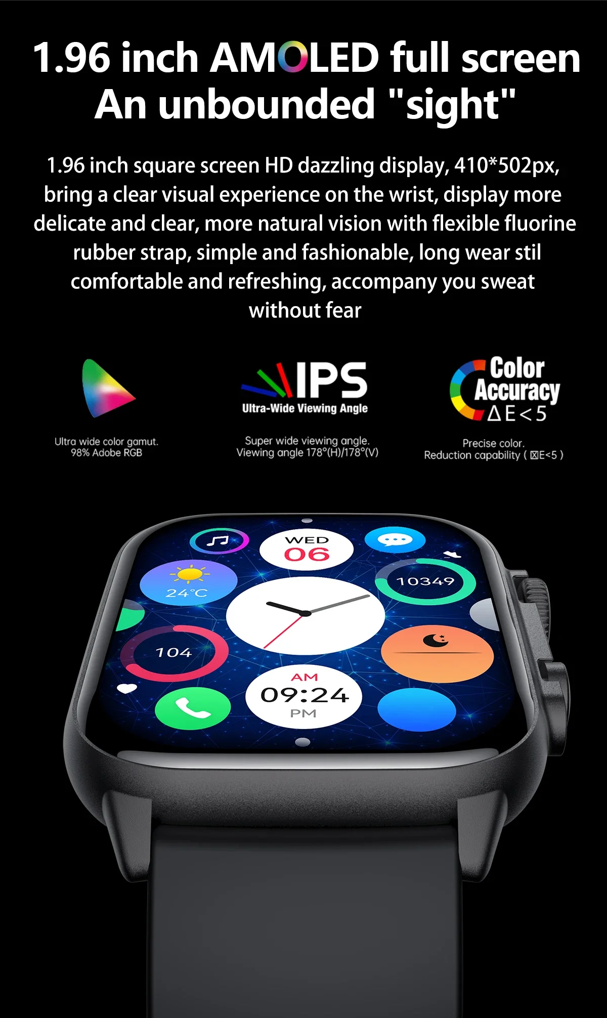 Display: 2.04 inch HD AMOLED Displayer Full Touch Screen